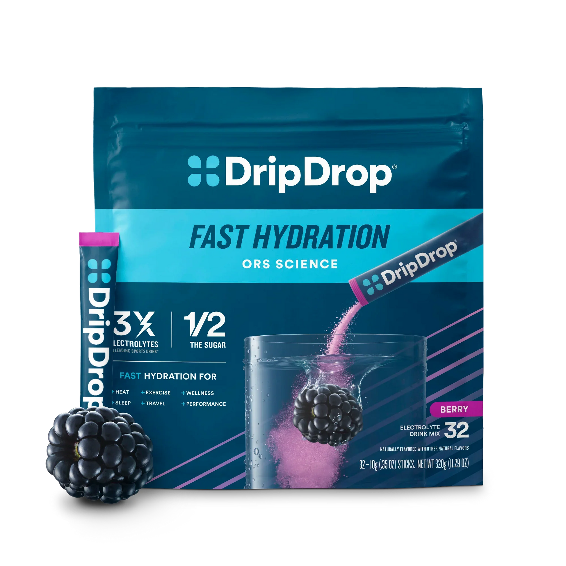 Doctor-developed DripDrop contains the sodium electrolyte levels and lower glucose content required to facilitate fast fluid absorption, AND it tastes great. Packed with essential electrolytes like sodium, potassium, and magnesium, plus zinc and vitamin C for immune support, it's an effective rehydration solution.